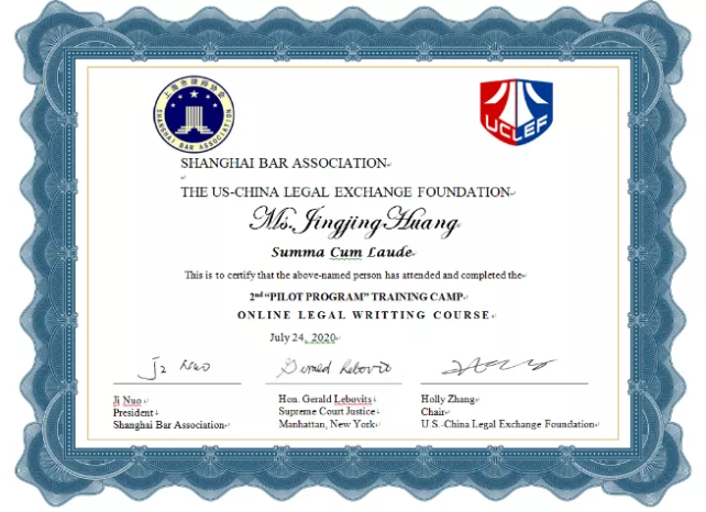 “時光飛逝,開班儀式恍如昨日。這次培訓經歷讓我們經歷了一次自我革新和進步。很高興在這段艱難卻快樂的時光中提高了自己的英文法律寫作水平。”