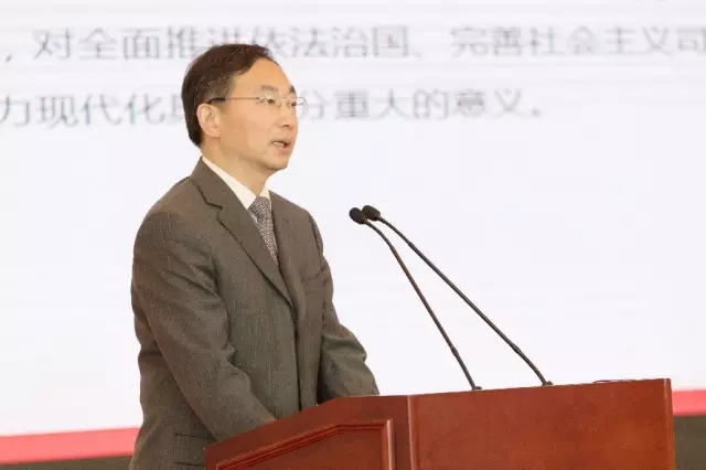上海律協會長俞衛鋒以“律師參與司法體制改革”主題,從司法公正、司法效率、司法資源三個維度闡述對上海司法體制改革的理解,并從律師行業如何助力司法改革角度,向在座嘉賓做了分享。