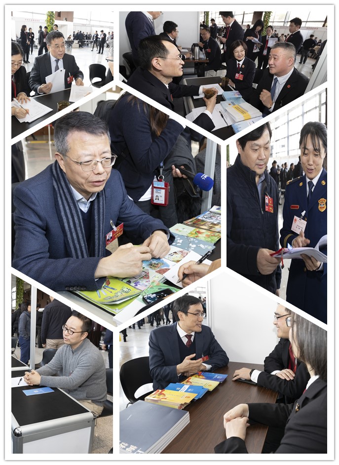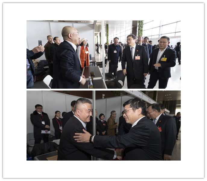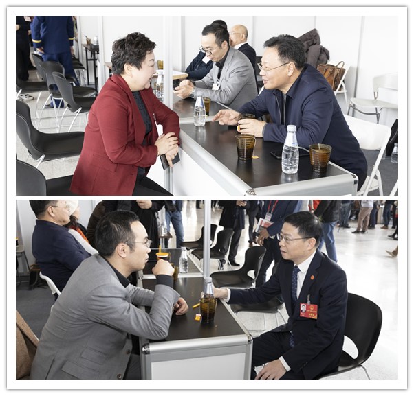 在咨詢會現場,市人大有關領導和參與市人大會議現場咨詢的人員握手并詢問相關情況。