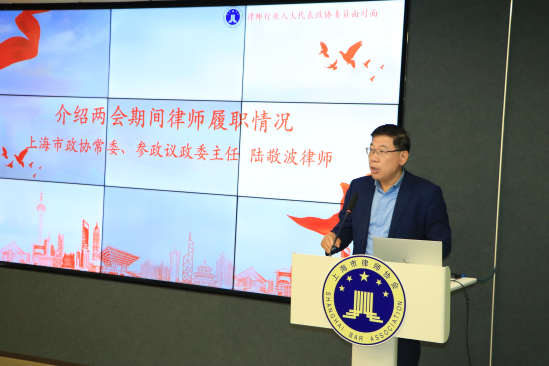 本次活動由上海律協參政議政委副主任金纓主持。上海市政協常委、上海律協參政議政委主任陸敬波律師首先介紹了上海市區兩級“兩會”期間律師代表、委員的履職情況,并提出了做好上海律師人大代表、政協委員參政議政工作的若干建議。