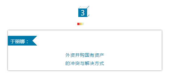 上海市恒泰律師事務所律師于麗娜以“外資并購國有資產的關注點”為主題做主旨發言。她提到國資企業和外資企業的管理是兩條復雜的線,新的規定對本就可能存在交叉和沖突的外資并購國資項目產生了新的化學反應。她總結道,外資與國資相比較,想法和執行方式均存在差異,所以應該互相了解對方的想法,才能更好地實現并購發展。