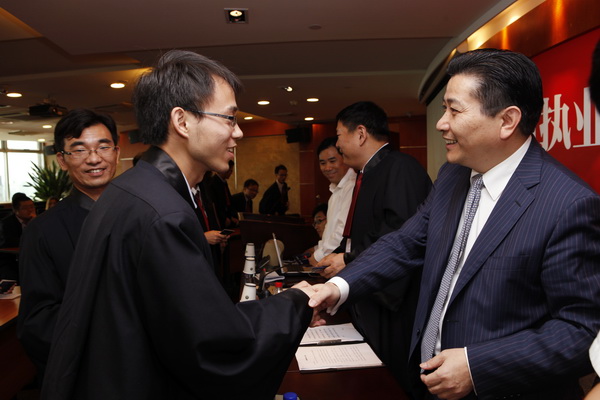 2011年8月31日下午,新律師入行儀式在市律協35樓報告廳隆重舉行。上海市律師協會副會長陳乃蔚、秘書長萬恩標、副秘書長陳東,首屆東方大律師、上海翟建律師事務所翟建主任與今年七月份剛剛領取到律師執業證的新律師共同參加了此次儀式。入行儀式由市律協理事劉習赟主持。