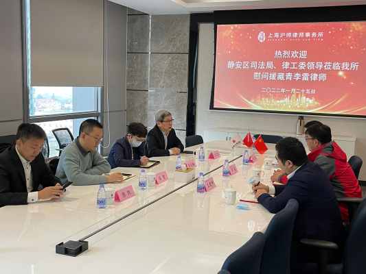 2022年1月25日,靜安區(qū)司法局副局長李成梅、靜安律工委主任王昊東、副主任陳凱等一行赴上海滬師律師事務所慰問靜安區(qū)援藏律師李雷。