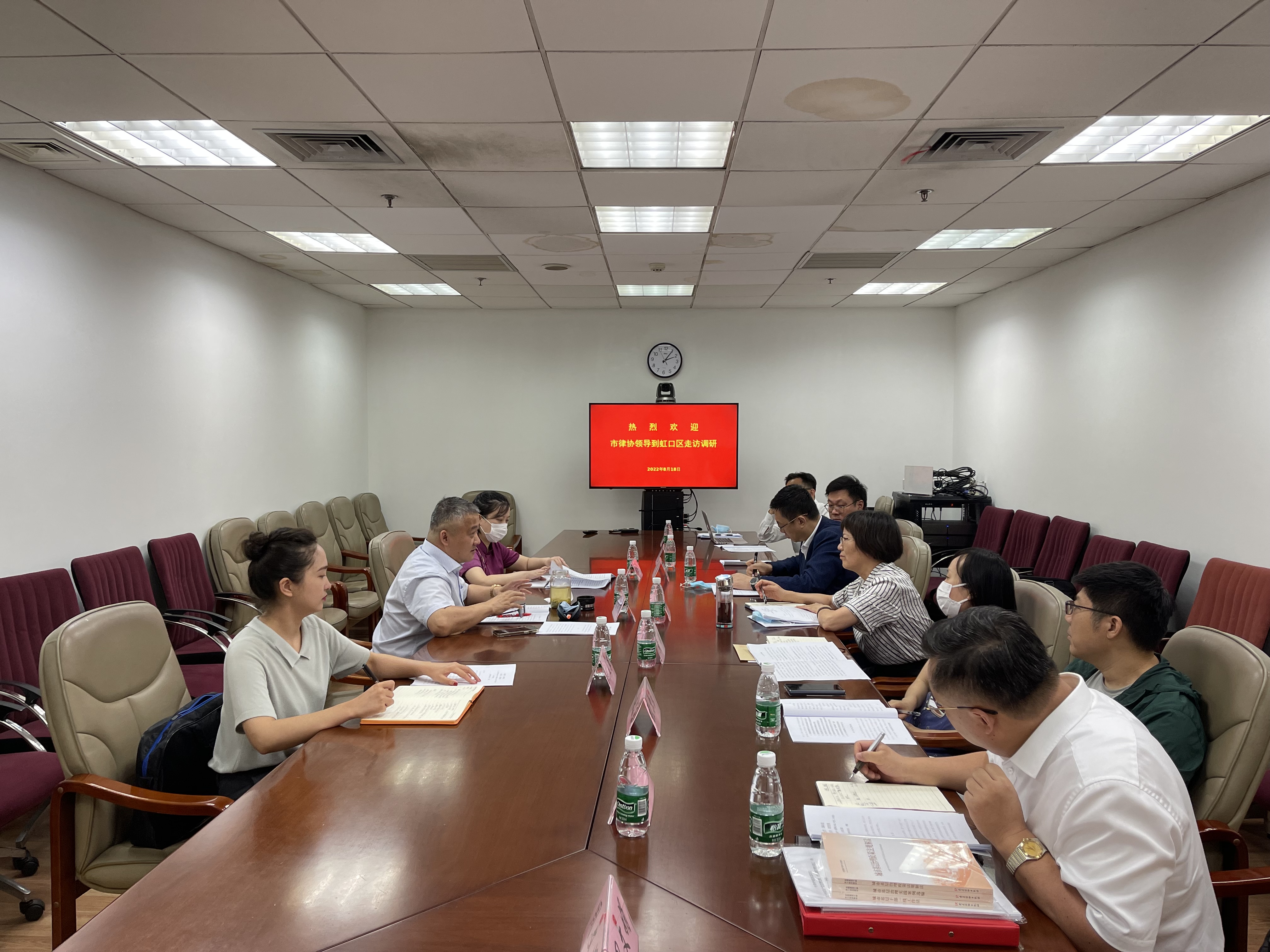 2022年8月18日下午,上海市律師協(xié)會副會長潘書鴻、辦公室主任陶麗萍等一行到虹口區(qū)走訪調研,虹口區(qū)司法局副局長胡曉紅、律公科科長黃琲、律工委主任田波及部分虹口區(qū)律師代表參加了調研活動。