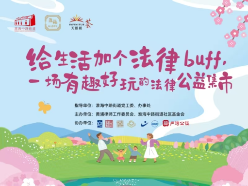 5月9日中午,由淮海中路街道黨工委、辦事處指導(dǎo),由黃浦律師工作委員會(huì)、淮海中路街道社區(qū)基金會(huì)主辦的“給生活加個(gè)法律buff”公益集市活動(dòng)順利舉行。