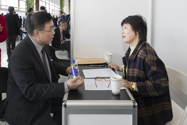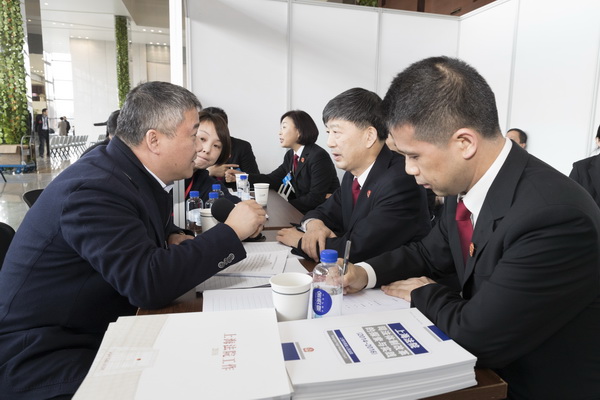 在咨詢會現場,市人大有關領導和參與市人大會議現場咨詢的人員握手并詢問相關情況。