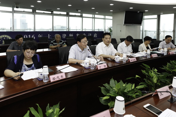 8月18日下午,市人大常委會(huì)副主任吳漢民帶隊(duì),市人大法制委主任委員林化賓、市人大法制委副主任委員、常委會(huì)法工委主任丁偉、市人大常委會(huì)副秘書長(zhǎng)、常委會(huì)法工委副主任林蔭茂、市人大常委會(huì)法工委辦公室主任姜志東、市人大常委會(huì)法工委立法一處處長(zhǎng)沈建明、市人大常委會(huì)法工委立法二處副處長(zhǎng)崔凱一行7人蒞臨市律協(xié),就《上海市道路交通管理?xiàng)l例(修訂草案)》、《上海市公共場(chǎng)所控制吸煙條例修正案(草案)》召開座談會(huì),聽取律師意見。