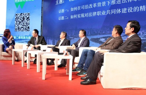 分論壇一的主題是“法律職業共同體建設與律師社會責任”。如何在司法改革背景下推進法律職業共同體建設?如何實現對法律職業共同體建設的精神認同、文化認同?徐匯區人民法院院長吳金水、徐匯區人民檢察院檢察長楊慧亮、上海交通大學凱原法學院副院長楊力、華東政法大學科學研究院院長陳金釗、上海市律師協會副會長王嶸在譚芳律師的主持下進行了熱烈探討。