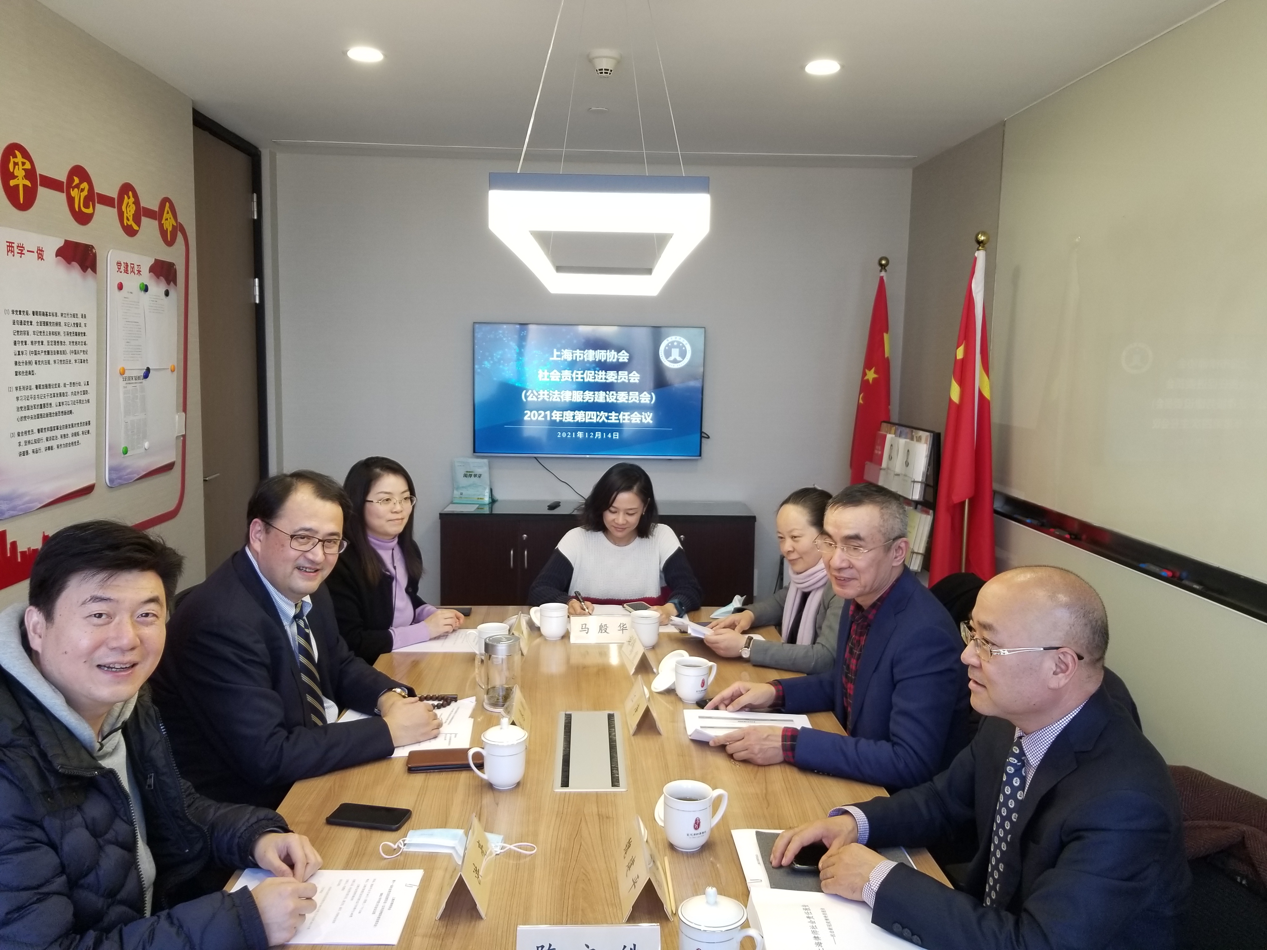 2021年12月14日下午,上海律協社會責任促進委員會(公共法律服務建設委員會)2021年度第四次主任工作會議在上海市金茂律師事務所召開。上海律協社會責任促進委員會主任毛惠剛,副主任洪亮、江凈、魏建平、許海霞,秘書陳之皓,業務部陳一沁主任等出席了本次會議。