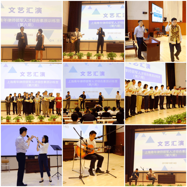 晚上學員們迎來了備受期待的青訓營文藝匯演。青年律師們展現了換下正裝后可咸可甜的另一面。吉他彈唱、中英文詩歌朗誦、小品,魔術等各種文藝形式都一一在舞臺展現,同學們之間真摯的情感在音樂中流動。