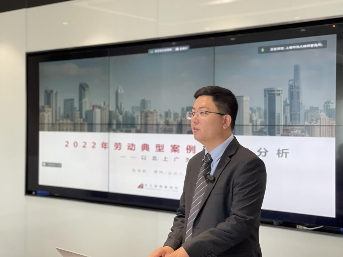 培訓中,陳奇新律師就勞動合同的訂立、履行及終止等內容,從試用期、休息休假、工資報酬、調崗調薪、解除終止、競業限制與商業秘密六個方面,結合2022年度北上廣地區的典型勞動法案例,基于法律法規,聚焦案件情況,參考裁判結果,進行詳細解讀與重難點分析。
