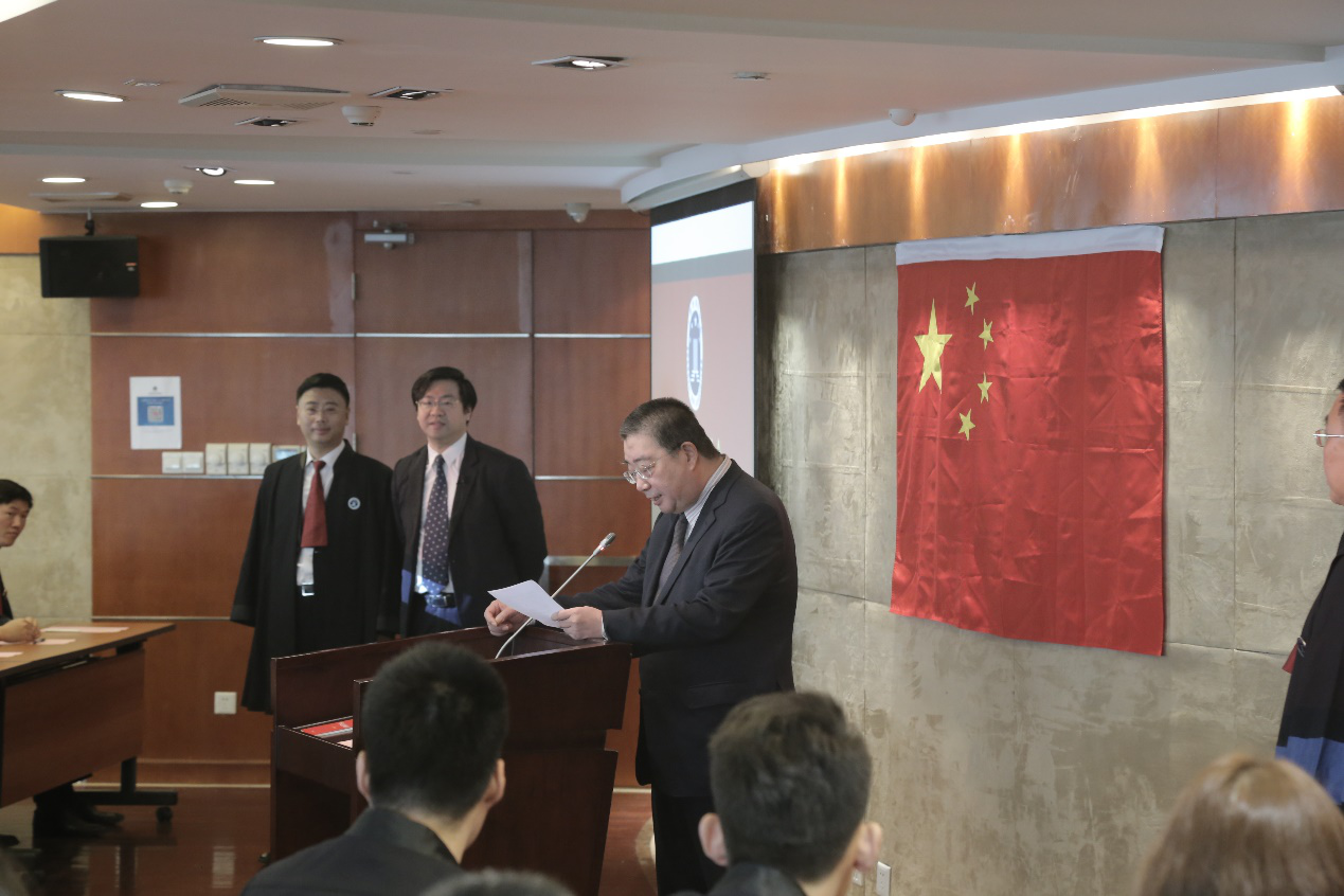 上午10時,忻峰秘書長宣布儀式開始,宣誓人全體起立,面向國旗,同時奏唱中華人民共和國國歌。隨后,領(lǐng)誓人管建軍副會長左手撫按《中華人民共和國憲法》,右手舉拳,領(lǐng)誦誓詞,其他宣誓人整齊列隊(duì)站立,右手舉拳,跟誦誓詞。