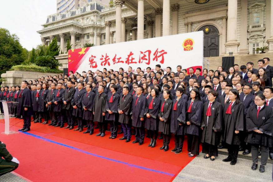 今年12月2日至12月8日是我國第一個“憲法宣傳周”,12月4日是第五個國家憲法日。為深入貫徹落實(shí)習(xí)近平總書記全面依法治國新理念、新思想、新戰(zhàn)略,增強(qiáng)律師職業(yè)使命感和榮譽(yù)感,弘揚(yáng)憲法精神,維護(hù)憲法權(quán)威,今天, “憲法宣傳周”首日,上海市司法局、上海市律師協(xié)會組織上海律師舉行了莊重的集體宣誓儀式。