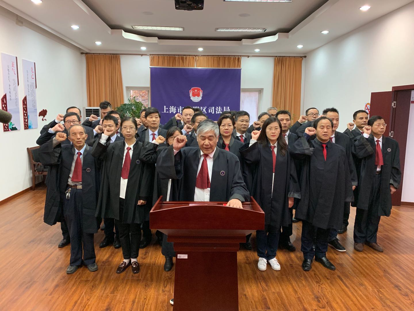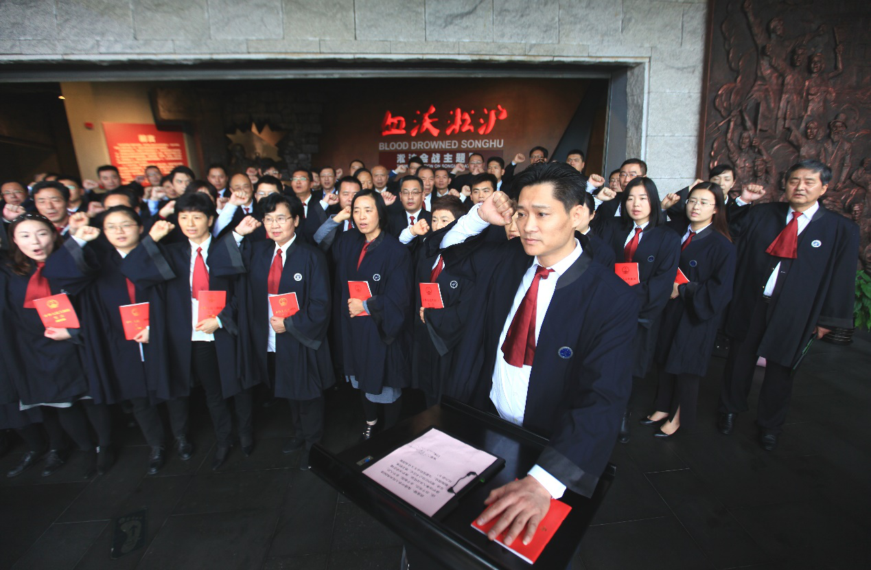 與此同時,上海各區(qū)司法局、律工委和律師事務(wù)所也在今日組織了律師宣誓活動。如:黃浦區(qū)律師在上海律師的發(fā)源地——上海律師公會舊址陳列館舉行了宣誓儀式;101名律師在寶山淞滬抗戰(zhàn)紀(jì)念館參加宣誓,寶山電視臺全程錄播等。據(jù)統(tǒng)計,今天上海參加宣誓儀式的律師超過5400名。憲法宣傳周期間,還將有數(shù)千名律師進(jìn)行宣誓。誓言在口,更在于行,廣大上海律師勇于擔(dān)當(dāng)、志存高遠(yuǎn),堅決履行律師使命、捍衛(wèi)法律尊嚴(yán),以實(shí)際行動踐行誓言!