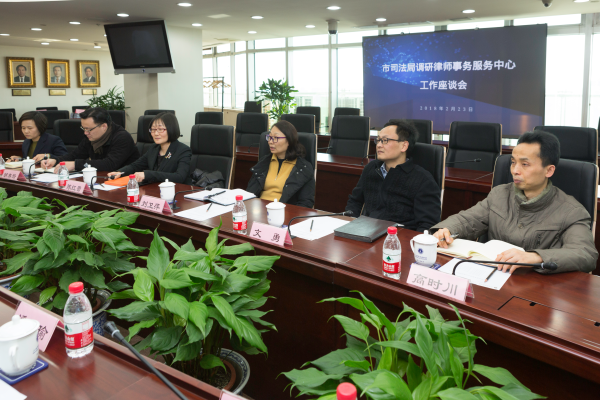 2018年2月23日下午,市司法局黨委副書記、政治部主任劉衛萍、政治部副主任、干部處處長文勇、司改辦主任陳紅蕾、黨群工作處處長高時川、人事警務處(老干部處)處長胡騫驁、辦公室(外事辦)副主任王奕蓉等一行在市律協第一會議室調研市律師事務服務中心工作。市律協黨委副書記忻峰,市律師事務服務中心副主任陳東、潘瑜,宣傳部主任莊燕、事務部主任曹頻、調研部主任吳振光參加會議。