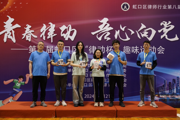 區(qū)律工委副主任、區(qū)青年律師聯(lián)誼會(huì)會(huì)長(zhǎng)盧昭宇宣布本次運(yùn)動(dòng)會(huì)的最終比賽成績(jī)。一等獎(jiǎng)是京菁有未隊(duì),二等獎(jiǎng)是法震先鋒隊(duì)、華商隊(duì)、女律聯(lián)隊(duì),三等獎(jiǎng)是京彩絕倫隊(duì)、迪斯尼隊(duì)、眾志成城隊(duì)、理誠隊(duì)、鼎力善行隊(duì)。區(qū)司法局副局長(zhǎng)周浩、區(qū)司法局副局長(zhǎng)、區(qū)律師行業(yè)黨委書記胡曉紅、區(qū)司法局黨委副書記趙英為獲獎(jiǎng)隊(duì)伍頒獎(jiǎng)并合影留念。