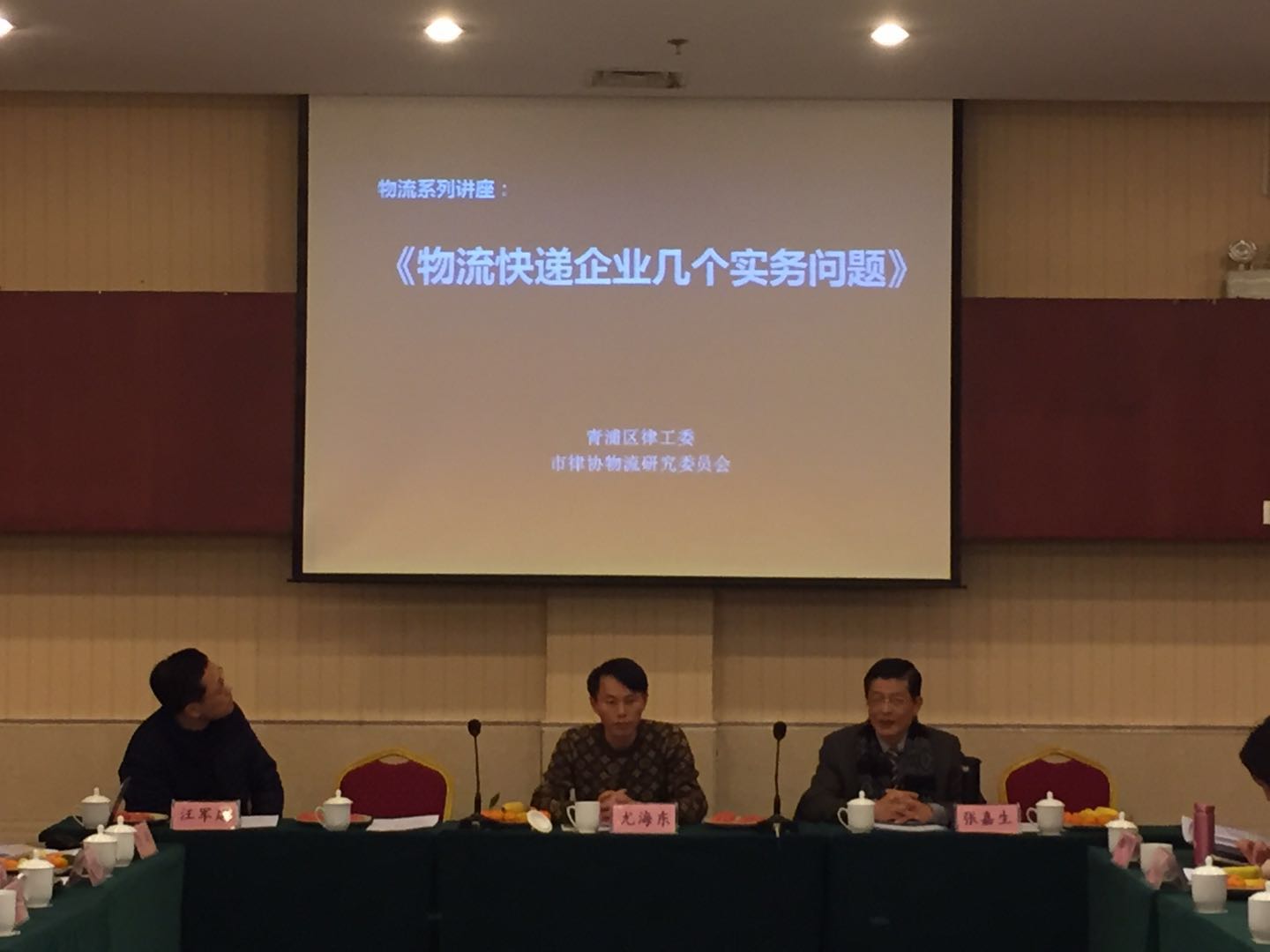 2017年12月9日,市律協現代物流業務研究委員會與青浦律師工作委員會在青浦聯合舉辦《物流快遞企業幾個實務問題》專題講座。青浦區司法局副局長尤海東、公律科科長李桂林、青浦區律工委主任李輝、副主任汪軍建出席了研討會,40多名律師到場聆聽。