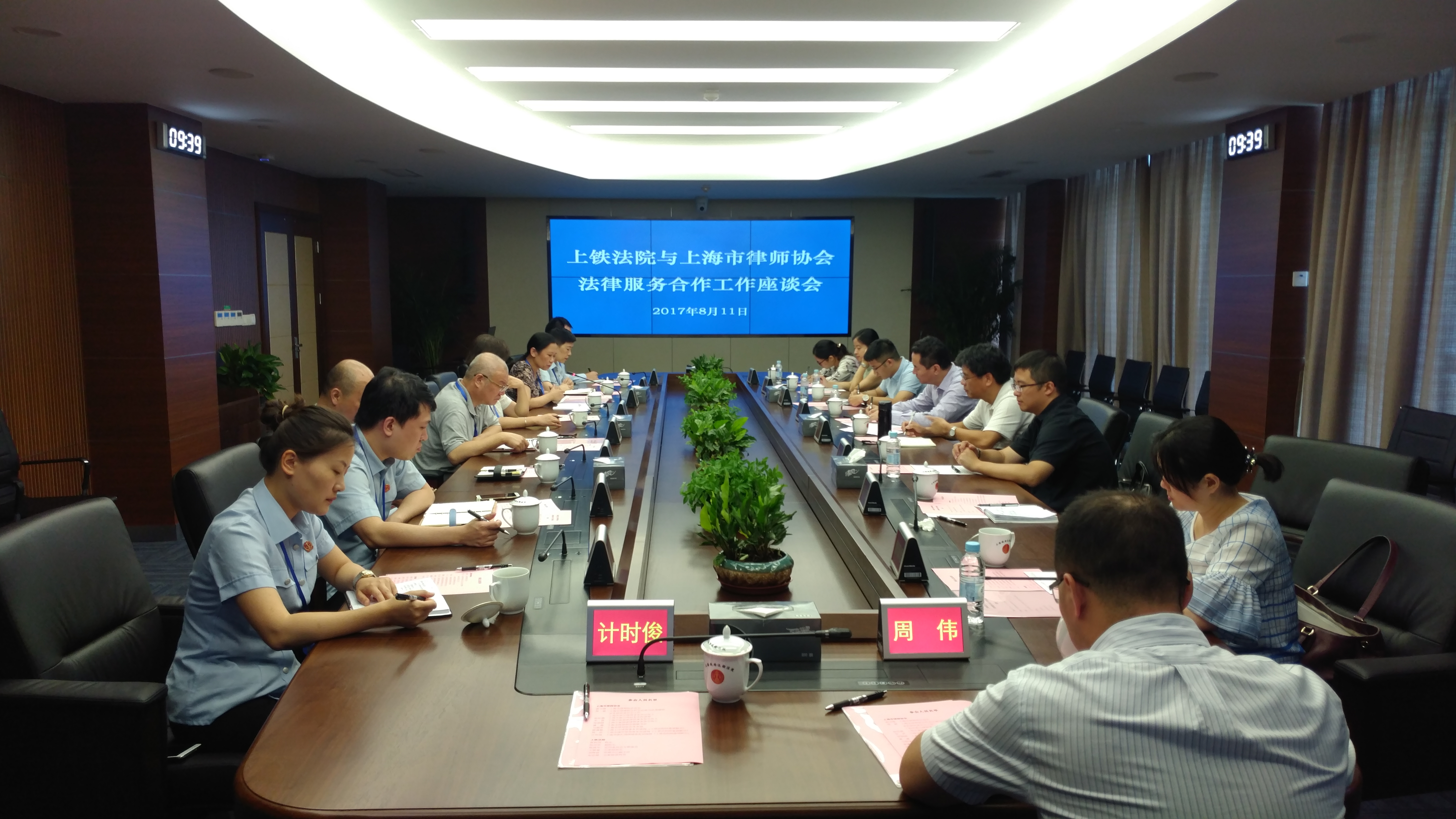 2017年8月11日上午,市律協會長俞衛鋒、副秘書長潘瑜、上鐵法院法律服務窗口代表震旦所鄭祺、徐佐旗、中夏旭波所華琪、鄒娟娟、上鐵法院特邀調解員代表華夏匯鴻所計時俊、捷華所周偉、七方所廖瀟歌等拜訪剛搬遷至石龍路555號的上海鐵路法院,與上鐵法院院長俞秋瑋、副院長侯丹華、審判委員會、立案庭、訴調中心相關負責人等進行座談,總結半年多來兩家單位的合作情況。