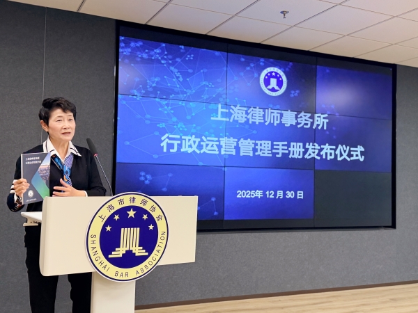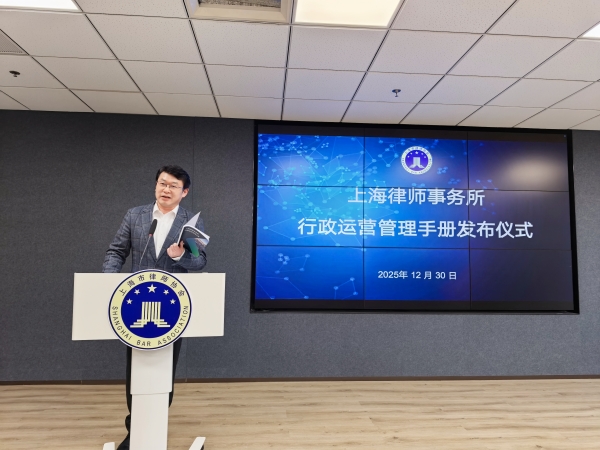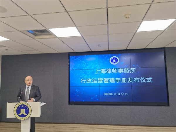 2025年12月30日下午,《上海律師事務(wù)所行政運(yùn)營(yíng)管理手冊(cè)》發(fā)布儀式在上海律協(xié)20樓報(bào)告廳舉行。上海律協(xié)秘書長(zhǎng)唐潔,理事、律所規(guī)范與發(fā)展委員會(huì)主任王軍旗,律所規(guī)范與發(fā)展委員會(huì)副主任周晶敏出席儀式。手冊(cè)編寫組成員以及50余位本市律所行政運(yùn)營(yíng)主管共同參加了發(fā)布活動(dòng)。