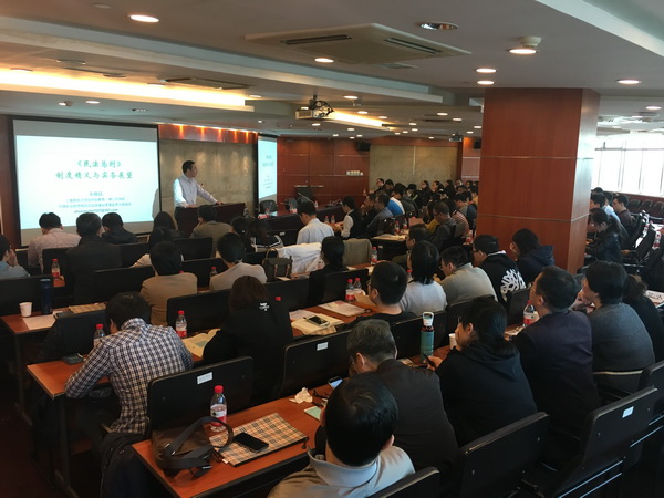 上海財經大學法學院的朱曉喆教授以“《民法總則》制度精義與實務展望”為題,從《民法總則》立法概況、民事主體制度更新、民事權利的新規定、民事法律行為制度的發展變化、《民法總則》代理新增制度、訴訟時效等幾個方面入手,重點講解了《民法總則》的部分新增內容。